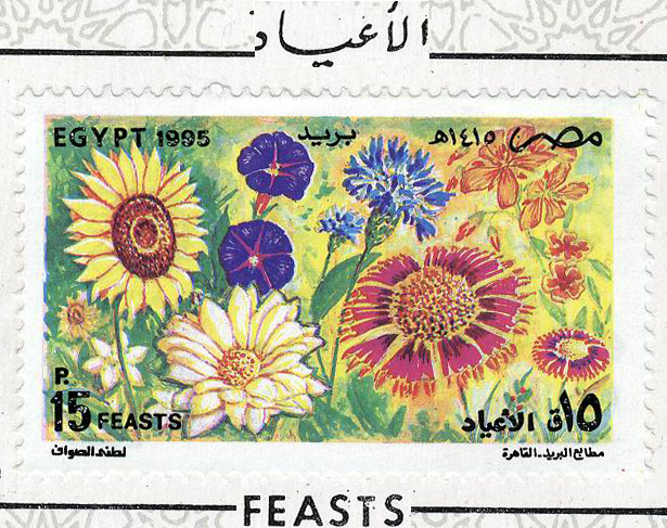 مجموعة متنوعة من الزهور على طابع بوستة[تذكاري] للاعياد 1995م.