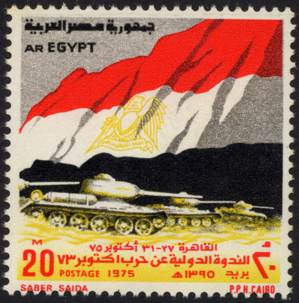 علم مصر ودبابات على طابع بوستة(تذكارى)للإحتفال بذكرى العبور6أكتوبر الثانية (ا...